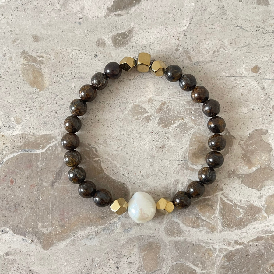 La bronzite présente des nuances brunes profondes et chaleureuses. Elle apporte une touche minérale élégante et naturelle.
