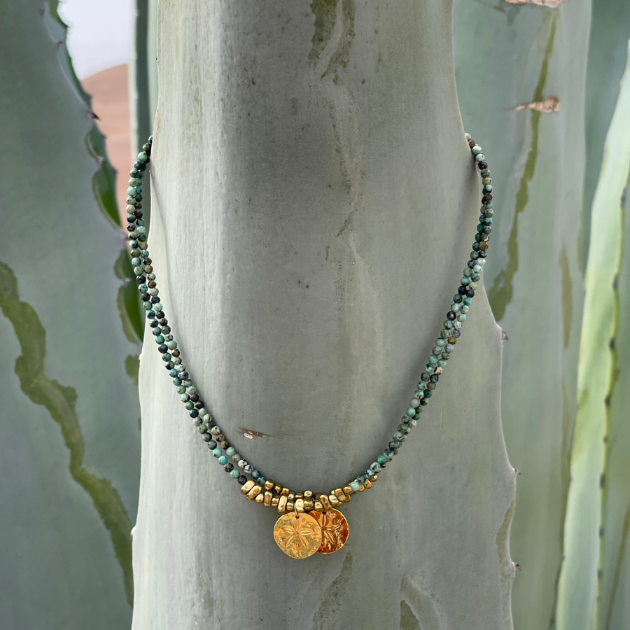 Collier turquoise « BLUE SPIRIT » médaille dollar des sables